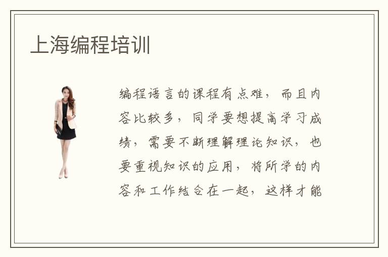 編程語言的課程有點(diǎn)難,而且內(nèi)容比較多,同學(xué)要想提高學(xué)習(xí)成績(jī),需要不斷理解理論知識(shí),也要重視知識(shí)的應(yīng)用,將所學(xué)的內(nèi)容和工作結(jié)合在一起,這樣才能真正發(fā)揮出學(xué)習(xí)應(yīng)有的價(jià)值。如果總是關(guān)注理論,不懂得怎么應(yīng)用,確實(shí)會(huì)遇到很多難題。上海編程培訓(xùn)編程培訓(xùn)學(xué)校可以介紹多種多樣的課程,無論是網(wǎng)絡(luò)授課,還是1對(duì)1授課,都有大量的學(xué)員報(bào)名。比如不少同學(xué)時(shí)間不夠用,可以著重關(guān)注網(wǎng)絡(luò)課程。有的人覺得自己的學(xué)習(xí)狀態(tài)不夠好,需要有老師監(jiān)督,也可以考慮1對(duì)1授課。編程培訓(xùn)如何找,編程工程師好不好找工作,工程師很好找工作,因?yàn)槭袌?chǎng)需求量相當(dāng)大,每年都會(huì)有大量的軟件技術(shù)公司聘請(qǐng)編程工程師。不過工程師要有很強(qiáng)的專業(yè)實(shí)力,才能得到高的待遇,獲得更多工作優(yōu)勢(shì)。