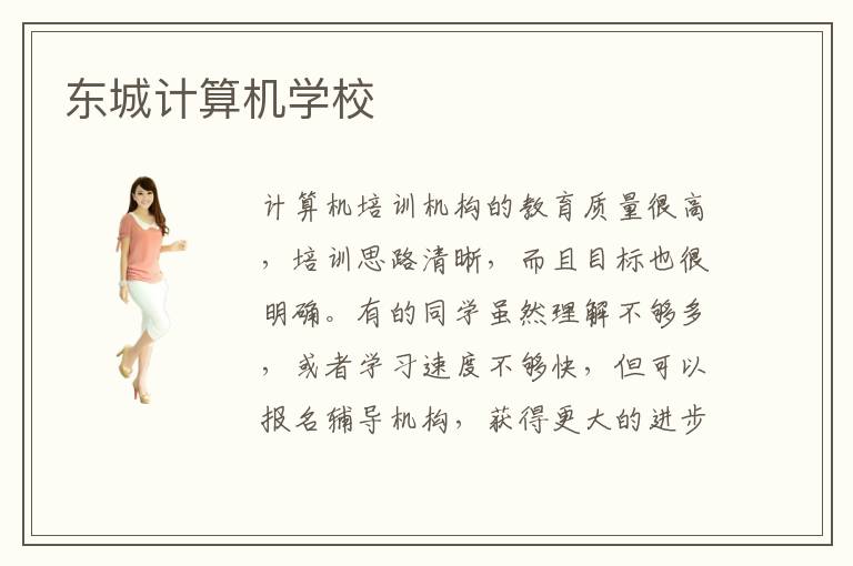 計(jì)算機(jī)培訓(xùn)機(jī)構(gòu)的教育質(zhì)量很高,培訓(xùn)思路清晰,而且目標(biāo)也很明確。有的同學(xué)雖然理解不夠多,或者學(xué)習(xí)速度不夠快,但可以報(bào)名輔導(dǎo)機(jī)構(gòu),獲得更大的進(jìn)步。東城計(jì)算機(jī)學(xué)校計(jì)算機(jī)學(xué)校好不好,計(jì)算機(jī)學(xué)校的教育水準(zhǔn)一般很高,培訓(xùn)思路清晰,可以幫助很多同學(xué)改善技術(shù)競(jìng)爭(zhēng)力,雖然不少同學(xué)剛剛起步,對(duì)一些理論的理解了解不充分,也不知道怎么樣去應(yīng)用,導(dǎo)致成績(jī)并不是特別理想。而報(bào)名輔導(dǎo)機(jī)構(gòu)之后,往往就能夠深入了解很多前沿的技術(shù),從而獲得非常大的改善空間。計(jì)算機(jī)學(xué)校上課時(shí)間多不多,一般情況下,同學(xué)可以報(bào)名網(wǎng)絡(luò)輔導(dǎo)班,利用碎片時(shí)間就能上課,也可以選擇周末上課或者晚上上課。不過(guò)在上課期間,要有比較嚴(yán)謹(jǐn)?shù)膽B(tài)度,不要隨便對(duì)待,以免影響學(xué)習(xí)效果。