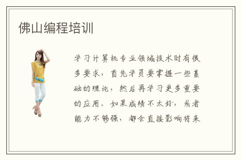 學習計算機專業(yè)領域技術時有很多要求,首先學員要掌握一些基礎的理論,然后再學習更多重要的應用。如果成績不太好,或者能力不夠強,都會直接影響將來的表現(xiàn),發(fā)揮機會也會少很多。一些同學看到不足,所以會選擇專業(yè)的佛山編程培訓機構,希望得到老師的指導,獲得更多進步機會。編程培訓有什么優(yōu)點,培訓機構的主要優(yōu)勢在于教學重點非常鮮明,而且每個階段都有清晰的培訓方向,這樣同學就不用擔心,學習一半的時候方向過于模糊、找不到學習重點等等問題。編程工程師就業(yè)要求有哪些,編程工程師的就業(yè)要求相當多,比如技術人員要掌握軟件開發(fā),數(shù)據(jù)庫應用,網絡管理等等重點課程。假如還不了解怎么樣設計軟件,也不知道如何應用數(shù)據(jù)庫,都要多長時間訓練,以免無法完成工作要求。