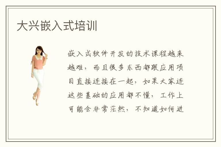 嵌入式軟件開發(fā)的技術(shù)課程越來越難,而且很多東西都跟應(yīng)用項(xiàng)目直接連接在一起,如果大家連這些基礎(chǔ)的應(yīng)用都不懂,工作上可能會非常茫然,不知道如何進(jìn)步。如果想要獲得進(jìn)步,可以報名一些專業(yè)的大興嵌入式培訓(xùn)學(xué)校,學(xué)習(xí)一些重點(diǎn)的應(yīng)用項(xiàng)目,從而在工作中有更多表現(xiàn)。嵌入式培訓(xùn)優(yōu)勢多不多,多數(shù)嵌入式軟件培訓(xùn)軟件培訓(xùn)機(jī)構(gòu)的優(yōu)勢都十分明顯,老師會分析很多應(yīng)用方面的問題,讓大家一步步去深入了解重要的課程,而且也可以沉浸其中,不用擔(dān)心學(xué)習(xí)狀態(tài)不好的情況。嵌入式培訓(xùn)機(jī)構(gòu)水準(zhǔn)非常高,首先就是很多老師都特別專業(yè),有多年經(jīng)驗(yàn),制定的課程也非常全面,另外老師會營造很好的學(xué)習(xí)氛圍,設(shè)法讓同學(xué)在輕松的環(huán)境下掌握重點(diǎn)的知識,而不會感覺到壓力特別大。