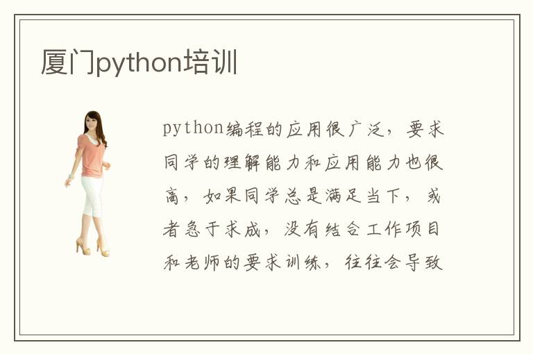 python編程的應(yīng)用很廣泛,要求同學(xué)的理解能力和應(yīng)用能力也很高,如果同學(xué)總是滿足當(dāng)下,或者急于求成,沒有結(jié)合工作項(xiàng)目和老師的要求訓(xùn)練,往往會(huì)導(dǎo)致知識(shí)漏洞特別多,難以進(jìn)行彌補(bǔ),后續(xù)的學(xué)習(xí)進(jìn)程會(huì)變得很慢。廈門python培訓(xùn)學(xué)校的學(xué)習(xí)氛圍很不錯(cuò),而且同學(xué)們可以獲得老師的1對(duì)1指導(dǎo),往往有更強(qiáng)勁的動(dòng)力,這樣可以相互促進(jìn),相互提高。python培訓(xùn)有沒有網(wǎng)上課程,python培訓(xùn)機(jī)構(gòu)的網(wǎng)絡(luò)課程其實(shí)很受歡迎,效果也比較好,因?yàn)橛械耐瑢W(xué)經(jīng)常時(shí)間不夠用,很難抽時(shí)間到現(xiàn)場(chǎng)聽課,而選擇網(wǎng)絡(luò)課程,情況就會(huì)得到改變。Python工程師的工資高嗎,工程師的工資水平一般都不錯(cuò),比如有些技術(shù)人員一個(gè)月下來可以拿到1萬到2萬的待遇。要是能力很強(qiáng),經(jīng)驗(yàn)很豐富,待遇還會(huì)更高。