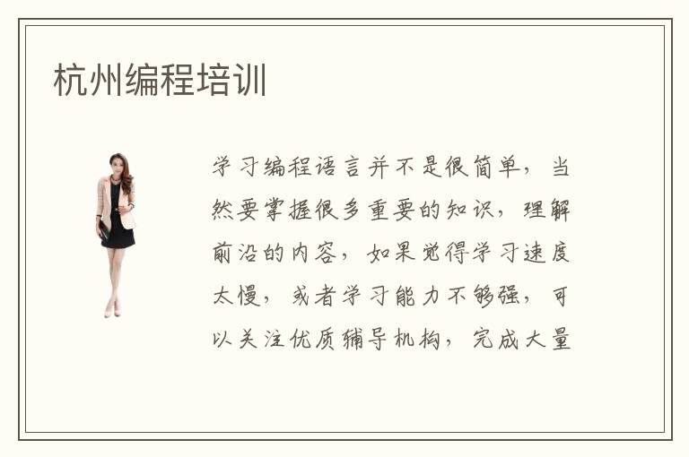 學習編程語言并不是很簡單,當然要掌握很多重要的知識,理解前沿的內(nèi)容,如果覺得學習速度太慢,或者學習能力不夠強,可以關注優(yōu)質(zhì)輔導機構,完成大量的訓練項目,這樣發(fā)揮空間會更開闊。杭州編程培訓編程培訓學校分享很多學習的思路,介紹多項重點課程,讓大家一步一個腳印,掌握很多前沿的技術,所以大家有興趣,也可以關注這些輔導機構,從而得到更多改進機會。編程培訓1對1教學有很多優(yōu)點,首先就是老師指定的課程要求十分嚴謹,內(nèi)容也相當豐富。而且每一項課程的針對性非常強,同學不僅可以學習到很多前沿的編程技術,而且也能找到自己真正需要學習的方向。編程有什么應用,編程應用很廣,包括軟件設計,程序開發(fā),游戲功能開發(fā),網(wǎng)絡優(yōu)化等等,大家要熟悉這些知識。