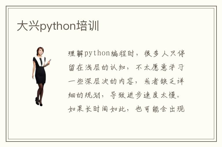 理解python編程時,很多人只停留在淺層的認(rèn)知,不太愿意學(xué)習(xí)一些深層次的內(nèi)容,或者缺乏詳細(xì)的規(guī)劃,導(dǎo)致進(jìn)步速度太慢。如果長時間如此,也可能會出現(xiàn)精神狀態(tài)不佳等問題。有的同學(xué)已經(jīng)意識到自己的問題,所以報名專業(yè)的培訓(xùn)班,得到更多指導(dǎo),快速解決現(xiàn)有的疑惑。大興python培訓(xùn)學(xué)校會解決應(yīng)用的難題,將理論和實(shí)踐緊密結(jié)合在一起,幫助同學(xué)開拓學(xué)習(xí)的思維,掌握學(xué)習(xí)重點(diǎn),爭取在短期內(nèi)獲得突破。python培訓(xùn)報名費(fèi)多少,可能在3300~8800元,但這只是一個大概范圍,沒有標(biāo)準(zhǔn)的答案,因為有的同學(xué)報名的課程很難,學(xué)習(xí)時間比較長,所以費(fèi)用會上升。有部分同學(xué)報名一些淺層的課程,課程比較簡單,學(xué)費(fèi)可能會比較低。python培訓(xùn)有哪些應(yīng)用,主要應(yīng)用有軟件設(shè)計、網(wǎng)絡(luò)開發(fā)、計算機(jī)程序等等。