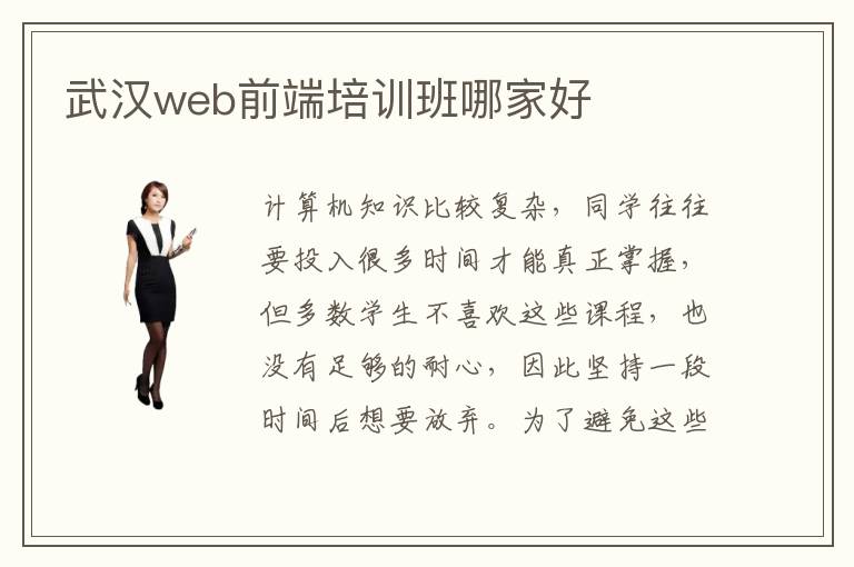 計算機知識比較復雜,同學往往要投入很多時間才能真正掌握,但多數(shù)學生不喜歡這些課程,也沒有足夠的耐心,因此堅持一段時間后想要放棄。為了避免這些問題,大家還是要調(diào)整一下心態(tài),分析一下武漢web前端培訓web前端培訓班哪家好,參與輔導班的課程,找到學習方向,努力實現(xiàn)突破。web前端培訓學校學費可能要花3800元到19500元,報名的學校,培訓方向,教學內(nèi)容等不一樣,會直接影響費用。在選擇學校過程中,大家要多了解每一個學校的教學優(yōu)勢和老師的專業(yè)水平。如果老師水平低,優(yōu)勢不夠明顯,就不要選擇,以免影響學習質(zhì)量。web前端技術員的工資大概在8500元到19500元,其實剛剛起步,大家不要只關注工資,應該重視個人能力的提升,才會有更好的薪水,不會擔心被淘汰。
