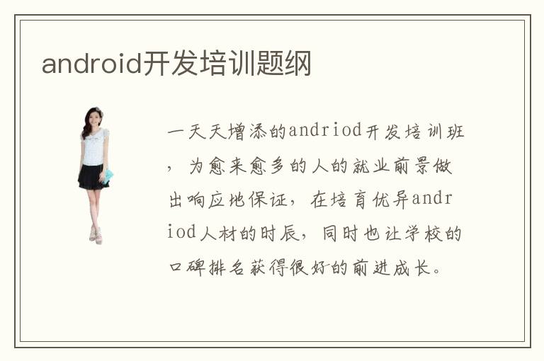 一天天增添的andriod開發(fā)培訓班,為愈來愈多的人的就業(yè)前景做出響應地保證,在培育優(yōu)異andriod人材的時辰,同時也讓學校的口碑排名獲得很好的前進成長。andriod開發(fā)培訓學校中心設有分歧就業(yè)方向的分歧入門高級課程,便利學生選擇本身的就業(yè)方向,使得講授形式趨于專業(yè)化。andriod開發(fā)培訓題綱表現(xiàn)。andriod開發(fā)培訓講授大綱怎么樣andriod開發(fā)培訓講授方向多角度全面化么android開發(fā)培訓題綱推薦電腦學校
