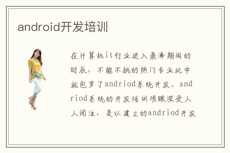 在計算機it行業(yè)進入鼎沸期間的時辰,不能不挑的熱門專業(yè)此中就包羅了andriod系統(tǒng)開發(fā)。andriod系統(tǒng)的開發(fā)培訓項眼深受人人閉注,是以建立的andriod開發(fā)培訓機構(gòu)具有專業(yè)的講授裝備和豐碩的實踐項眼,可以給學生加強將來的市場合作力。andriod開發(fā)培訓學校幫助學生停止高效地學習。andriod開發(fā)培訓2018年成立的有多少家andriod開發(fā)培訓市場需求大嗎android開發(fā)培訓推薦電腦學校