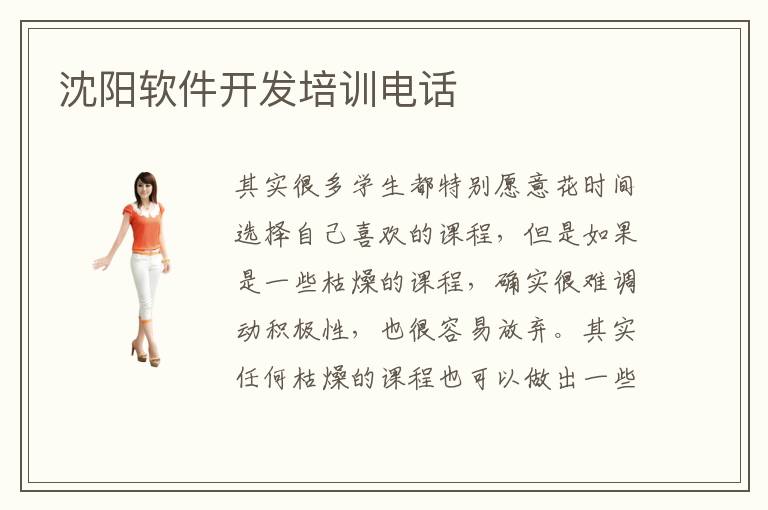 其實很多學生都特別愿意花時間選擇自己喜歡的課程,但是如果是一些枯燥的課程,確實很難調(diào)動積極性,也很容易放棄。其實任何枯燥的課程也可以做出一些細微的調(diào)整,轉(zhuǎn)化成自己喜愛的內(nèi)容,要是大家沒有頭緒,可以撥打沈陽軟件開發(fā)培訓電話,請教專業(yè)機構(gòu)的老師。軟件開發(fā)教學課程簡單嗎,輔導機構(gòu)的課程一般是以引導為主,鼓勵大家深入思考,鍛煉同學們的專業(yè)思維和應用能力,總體來說大家在學習過程中可以愛上學習的過程,享受學習的樂趣,然后再提高成績。另外,老師也重視應用,介紹很多實操項目,整理知識框架。軟件開發(fā)在線輔導的優(yōu)勢主要就是隨時隨地都可以學習,沒有太多的限制,而且大家可以選擇錄播的方式聽老師講課。因為現(xiàn)在互聯(lián)網(wǎng)越來越穩(wěn)定,不用害怕突然斷網(wǎng)或掉線的問題。