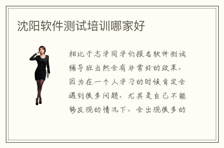 相比于志學(xué)同學(xué)們報名軟件測試輔導(dǎo)班當(dāng)然會有非常好的效果,因為在一個人學(xué)習(xí)的時候肯定會遇到很多問題,尤其是自己不能夠發(fā)現(xiàn)的情況下,會出現(xiàn)很多的漏網(wǎng)之魚。另外,很多專業(yè)的問題都沒有辦法通過自己的能力去解答,而有了專業(yè)輔導(dǎo)班的幫助,就可以得到快速解決。沈陽軟件測試培訓(xùn)哪家好,很多學(xué)校都有良好的學(xué)習(xí)環(huán)境,創(chuàng)造輕松愉悅的氛圍,讓大家在享受樂趣的過程中學(xué)習(xí)知識。軟件測試教學(xué)師資力量比較強,主要就是機構(gòu)的課程豐富,老師憑借多年的工作經(jīng)驗,非常懂得怎么樣去解決同學(xué)的問題,并且以專業(yè)的角度培養(yǎng)更多高水平的學(xué)生。軟件測試主要應(yīng)用是什么,主要是用于網(wǎng)頁測試管理工具,自動化測試,開源軟件測試,也可以應(yīng)用到各種軟件靜態(tài)和動態(tài)測試當(dāng)中。