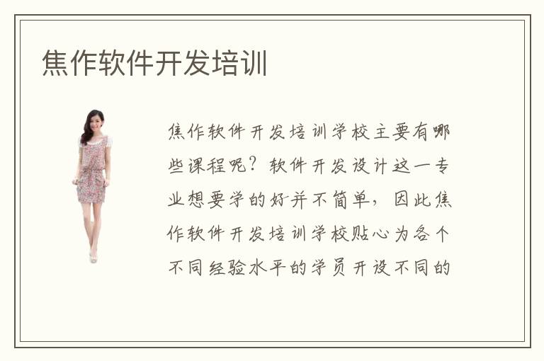 焦作軟件開發(fā)培訓(xùn)學(xué)校主要有哪些課程呢?軟件開發(fā)設(shè)計這一專業(yè)想要學(xué)的好并不簡單,因此焦作軟件開發(fā)培訓(xùn)學(xué)校貼心為各個不同經(jīng)驗水平的學(xué)員開設(shè)不同的培訓(xùn)課程。例如,對于剛剛進入軟件開發(fā)設(shè)計這一專業(yè)學(xué)習(xí)的新手學(xué)員,會從基礎(chǔ)知識開始介紹,循序漸進。而對于一些有經(jīng)驗的軟件開發(fā)設(shè)計工程師而言,這樣的課程就是多余的,因此開設(shè)了一些軟件開發(fā)的強化訓(xùn)練課程。