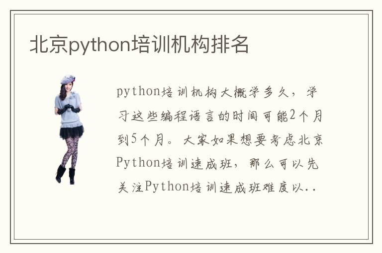 python培訓(xùn)機(jī)構(gòu)大概學(xué)多久,學(xué)習(xí)這些編程語(yǔ)言的時(shí)間可能2個(gè)月到5個(gè)月。大家如果想要考慮北京Python培訓(xùn)速成班,那么可以先關(guān)注Python培訓(xùn)速成班難度以及Python培訓(xùn)速成班成果,針對(duì)自己的學(xué)習(xí)背景來選擇恰當(dāng)?shù)恼n程,在應(yīng)用方面才會(huì)可以得到更明顯的特色優(yōu)勢(shì)。為了凸顯python課程學(xué)習(xí)價(jià)值,可多關(guān)注北京python培訓(xùn)機(jī)構(gòu),了解前沿的技術(shù)內(nèi)容,也許在學(xué)習(xí)和發(fā)展過程中,擁有更多進(jìn)步優(yōu)勢(shì)。提供大量的設(shè)備,讓學(xué)生可以親自動(dòng)手,提高實(shí)踐的水平。python培訓(xùn)班作用大嗎,python培訓(xùn)班有非常明顯的教學(xué)作用,首先就是課程的覆蓋面非常廣,而且老師會(huì)幫助學(xué)生快速關(guān)注重要的課程,充分利用培訓(xùn)時(shí)間,提升個(gè)人的學(xué)習(xí)能力,工作方面有更成熟的技能。