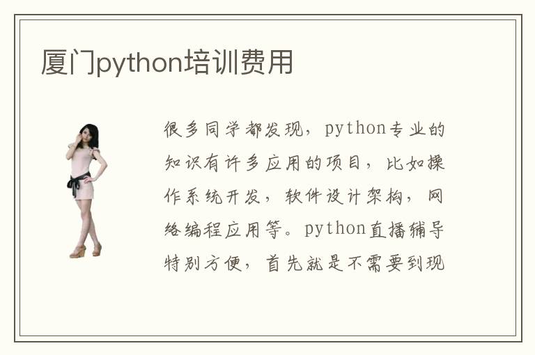 很多同學(xué)都發(fā)現(xiàn),python專(zhuān)業(yè)的知識(shí)有許多應(yīng)用的項(xiàng)目,比如操作系統(tǒng)開(kāi)發(fā),軟件設(shè)計(jì)架構(gòu),網(wǎng)絡(luò)編程應(yīng)用等。python直播輔導(dǎo)特別方便,首先就是不需要到現(xiàn)場(chǎng)培訓(xùn)班上課,在家里學(xué)習(xí)即可。還要重視大量的應(yīng)用,包括許多的軟件開(kāi)發(fā)以及爬蟲(chóng)應(yīng)用。python培訓(xùn)有困難嗎,python培訓(xùn)機(jī)構(gòu)的教學(xué)課程不會(huì)很困難,首先老師會(huì)掌握講課的節(jié)奏,根據(jù)學(xué)生的學(xué)習(xí)情況,調(diào)整學(xué)習(xí)的速度。廈門(mén)Python培訓(xùn)學(xué)費(fèi)也許只需要2500到11000元不等,但是課程的內(nèi)容以及Python培訓(xùn)教學(xué)資源等等都不一樣,因此具有不同的Python培訓(xùn)水平,學(xué)習(xí)的費(fèi)用都會(huì)有差異的。python應(yīng)用領(lǐng)域廣,比如可以用來(lái)開(kāi)發(fā)電子競(jìng)技游戲,或者是開(kāi)發(fā)頁(yè)面,應(yīng)用系統(tǒng)運(yùn)維,挖掘大數(shù)據(jù),分析數(shù)據(jù),金融理財(cái),人工智能等等。
