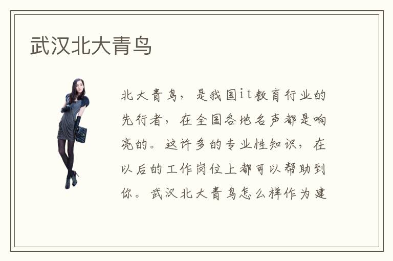 北大青鳥(niǎo),是我國(guó)it教育行業(yè)的先行者,在全國(guó)各地名聲都是響亮的。這許多的專業(yè)性知識(shí),在以后的工作崗位上都可以幫助到你。武漢北大青鳥(niǎo)怎么樣作為建立歷史悠久的一所學(xué)校。武漢北大青鳥(niǎo)學(xué)校在學(xué)生就業(yè)方面也有保武漢北大青鳥(niǎo)學(xué)校情況障。武漢北大青鳥(niǎo)在哪里呢。北大青鳥(niǎo)有用嗎,北大青鳥(niǎo)的課程很嚴(yán)謹(jǐn),與職場(chǎng)當(dāng)中的實(shí)踐課程充分融合,因此學(xué)生在整個(gè)課程當(dāng)中,都能掌握許多應(yīng)用的技巧和經(jīng)驗(yàn)。在武漢北大青鳥(niǎo)學(xué)校,畢業(yè)之后找工作方面比較有,優(yōu)勢(shì)。但報(bào)名補(bǔ)習(xí)班后,老師可以針對(duì)工作崗位的應(yīng)用,提高學(xué)生的專業(yè)技能培訓(xùn),工作優(yōu)勢(shì)更加顯著,找工作自然更輕松。武漢北大青鳥(niǎo)學(xué)校坐落于曾經(jīng)的小漁村今天的經(jīng)濟(jì)發(fā)達(dá)城市--貴武漢北大青鳥(niǎo)學(xué)校怎么樣陽(yáng)。