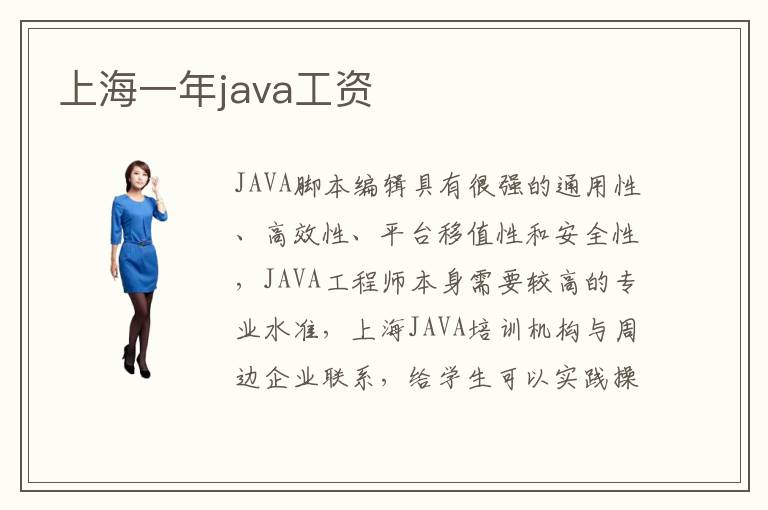 JAVA腳本編輯具有很強的通用性、高效性、平臺移值性和安全性,JAVA工程師本身需要較高的專業(yè)水準,上海JAVA培訓機構與周邊企業(yè)聯(lián)系,給學生可以實踐操作的平臺。既然要求這么高,那么,上海java工程師的薪資待遇是什么樣的呢?上海地區(qū)的JAVA工程師一年可以賺大概多少錢?上海一年的java工資是什么情況?上海一年java薪資水平高嗎?薪資吸引力度大嗎?
