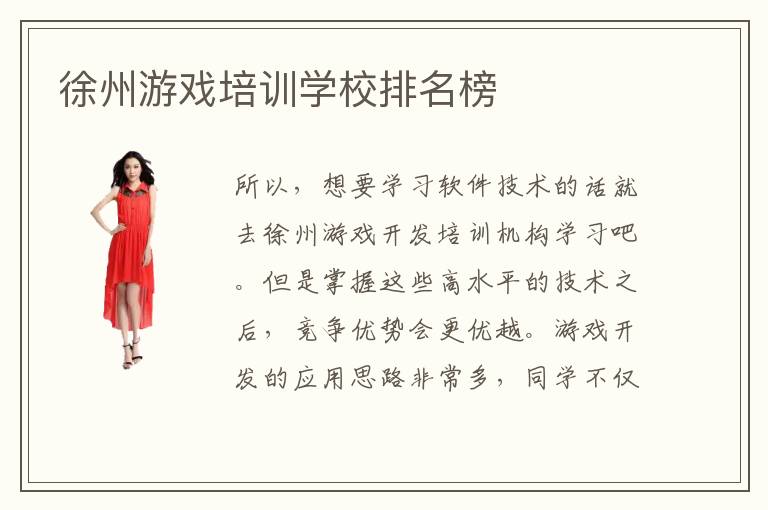 徐州游戲培訓學校排名榜