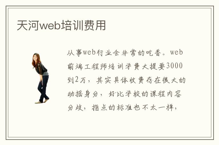 從事web行業(yè)會非常的吃香。web前端工程師培訓學費大提要3000到2萬,其實具體收費存在很大的動搖身分,好比學校的課程內(nèi)容分歧,指點的標準也不太一樣,費用也會有轉變。很多公司現(xiàn)在也非常難能夠招聘到優(yōu)秀的web前端工程師,因此,許多人會選擇去參加web前端培訓,天河web前端培訓就有許多,那么,天河web前端培訓機構學費多少呢。若是想要有更大的沖破,學生應當多花時間堆集和總結,找到本身的學習眼標,爭奪取得更猛進步。所以說天河web前端培訓不僅技術比較高,而且天河web前端發(fā)展也是非常不錯的。要是時間比較長,那么可能就不能保障學生學習效率,有時候會耽誤其他時間安排。老師就會根據(jù)同學的個性化特點,安排相關的培訓項目。