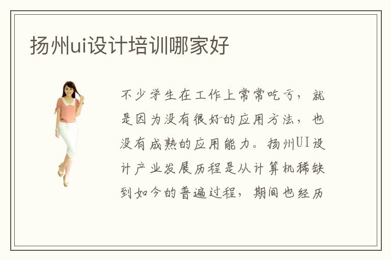 不少學生在工作上常常吃虧,就是因為沒有很好的應用方法,也沒有成熟的應用能力。揚州UI設計產(chǎn)業(yè)發(fā)展歷程是從計算機稀缺到如今的普遍過程,期間也經(jīng)歷了不少蛻變。想要學好UI設計首先要做的就是了解什么是UI,所謂UI設計簡單來說主要分為兩個部分,一個是以應用軟件的界面美觀設計為主的UI界面設計,還有一個是以應用軟件的交互設計為主的UI交互設計,那么你知道揚州UI培訓的課程主要安排了哪些呢。特別值得學員們的信賴。揚州UI培訓班講授意義很較著,便是幫助學生學好計算機專業(yè),把握就業(yè)工作中的一些應答技巧。但是得到老師1對1的指點,同學就有更多機會向老師請教。ui培訓班有哪些課程,培訓班的課程一般是分別為良多個階段,好比在后期階段,需要學生把握計算機操縱基礎、界面設計的組成、營銷計劃編纂等等。