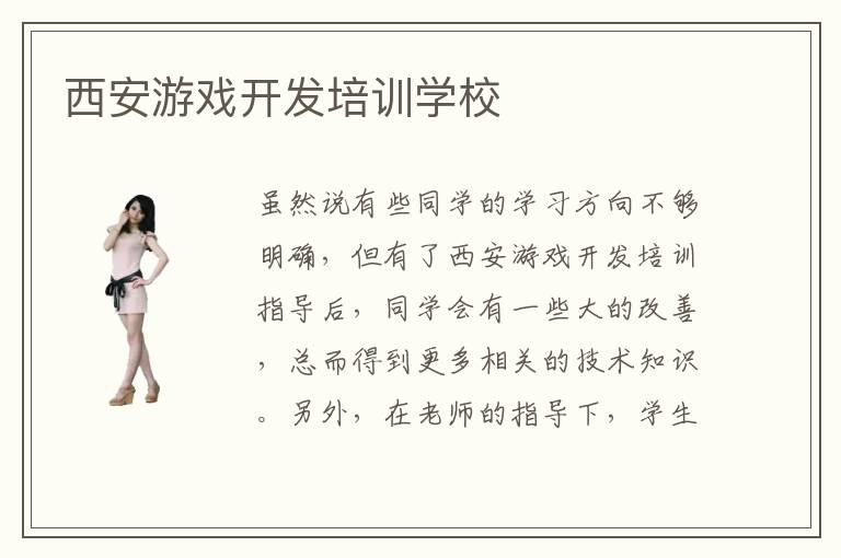 雖然說有些同學的學習方向不夠明確,但有了西安游戲開發(fā)培訓指導后,同學會有一些大的改善,總而得到更多相關的技術知識。另外,在老師的指導下,學生還要慢慢積累,開拓自己在這些專業(yè)方面的視野,了解不同課程的作用以及學習方式,做好更加豐富的學習準備。工作內容相對比較枯燥,整天對著電腦和鍵盤,對于身體負擔較大,屬于半高危行業(yè)。游戲設計培訓靠不靠譜,游戲輔導班特別靠譜,同學可以迅速了解一些應用的知識,提高技術競爭力。而且老師還會調整同學的狀態(tài),確保大家在更好的狀態(tài)下學習這些內容,自然也會讓同學有更好的進步,而且對將來的學習也會好很多。軟件開發(fā)不是一朝一夕就可以學會的,這個與個人的基礎和老師的教學都是相關西安游戲開發(fā)培訓免費試聽的。