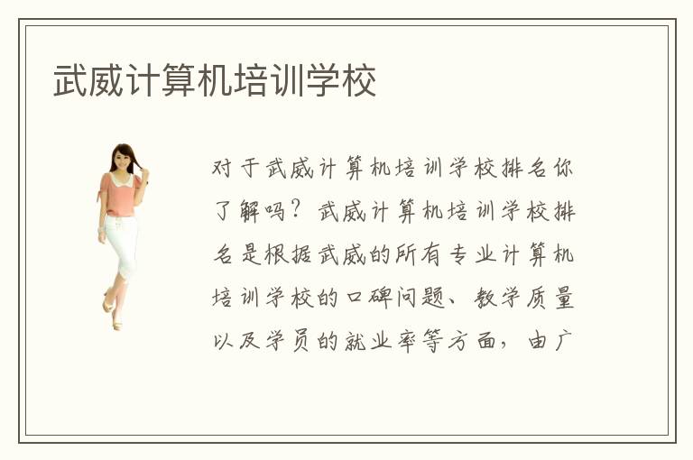 對于武威計算機培訓(xùn)學(xué)校排名你了解嗎?武威計算機培訓(xùn)學(xué)校排名是根據(jù)武威的所有專業(yè)計算機培訓(xùn)學(xué)校的口碑問題、教學(xué)質(zhì)量以及學(xué)員的就業(yè)率等方面,由廣大武威市民進行公平公正投票而得出的結(jié)果。對于很多并不了解計算機專業(yè),但又想學(xué)習(xí)計算機技術(shù),想在未來從事計算機相關(guān)職業(yè)的人來說,武威計算機培訓(xùn)學(xué)校排名是大家在選擇培訓(xùn)學(xué)校時,一個很好參考依據(jù)。