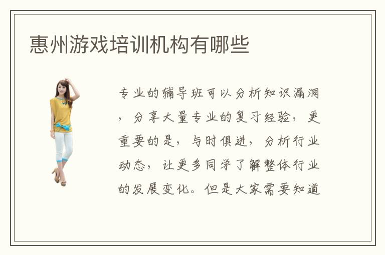 惠州游戲培訓機構有哪些