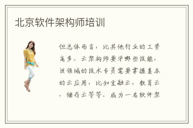 但總體而言,比其他行業(yè)的工資高多。云架構(gòu)師要學(xué)哪些技能,該領(lǐng)域的技術(shù)專(zhuān)員需要掌握基本的云應(yīng)用,比如金融云,教育云,儲(chǔ)存云等等。成為一名軟件架構(gòu)師之前,學(xué)生要有強(qiáng)大的實(shí)力,有長(zhǎng)時(shí)間的課程規(guī)劃,完成各種重要的課程,熟練掌握各種應(yīng)用領(lǐng)域的知識(shí),形成自身的知識(shí)框架和體系,才能夠勝任這項(xiàng)工作。要是同學(xué)想加快學(xué)習(xí)的腳步,學(xué)習(xí)更多重要的軟件架構(gòu)知識(shí),不妨報(bào)名北京架構(gòu)師培訓(xùn)機(jī)構(gòu)。學(xué)習(xí)軟件架構(gòu)和計(jì)算機(jī)應(yīng)用等等課程都有比較多知識(shí),學(xué)生要主動(dòng)探索,了解自己的漏洞,認(rèn)真進(jìn)行評(píng)估。如何選擇架構(gòu)師培訓(xùn)學(xué)校,其實(shí)不同培訓(xùn)班的輔導(dǎo)能力、教學(xué)課程內(nèi)容、培訓(xùn)方法都不太一樣,所以同學(xué)要謹(jǐn)慎對(duì)比,關(guān)注這些培訓(xùn)班的教學(xué)資源、培訓(xùn)質(zhì)量等等。