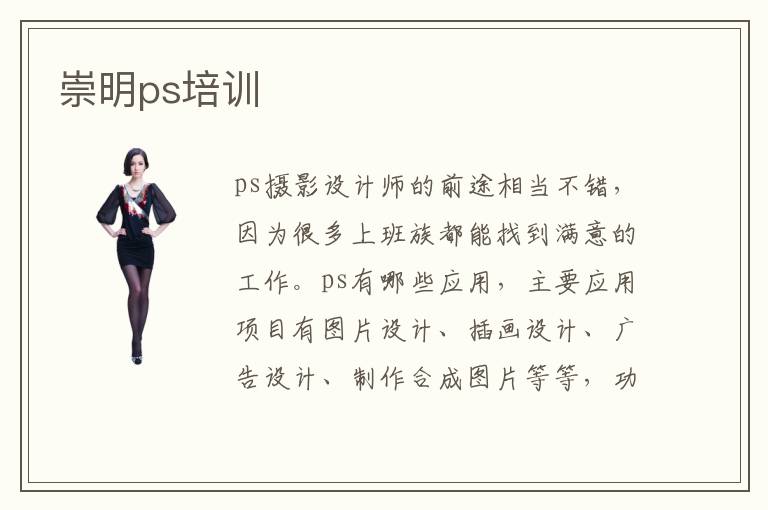 ps攝影設計師的前途相當不錯,因為很多上班族都能找到滿意的工作。ps有哪些應用,主要應用項目有圖片設計、插畫設計、廣告設計、制作合成圖片等等,功能非常強大。ps后期軟件入門難嗎,課程入門的難度比較低,但真正要達到工作的標準,要多花時間積累。還有部分同學學習ps的內容時,沒有挖掘自身的不足,經(jīng)常原地踏步,很難在工作上有良好的表現(xiàn)。還有部分同學基礎不扎實,可以報名ps軟件入門課程,同樣也可以取得很好的學習成果,對將來的學習和發(fā)展都有幫助。很多平面設計師和美工設計師對ps應用的了解都不夠多,平時也不懂得怎么樣學習這些內容,學習進度很慢,工作上也很容易吃虧。這樣學習起來就會比較輕松,工作表現(xiàn)會更為突出。