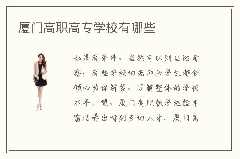 如果有條件,當(dāng)然可以到當(dāng)?shù)乜疾?,有些學(xué)校的老師和學(xué)生都會傾心為你解答,了解整體的學(xué)校水平。嗯,廈門高職教學(xué)經(jīng)驗豐富培養(yǎng)出特別多的人才。廈門高職院校氛圍總體來說相當(dāng)不錯,雖然說高職院校的門檻比較低。這些高校在政策扶持,教學(xué)資源和就業(yè)保障上,都做得很好。談完分類,那么究竟在沈陽那些高職學(xué)校受到大家的青睞和信任呢,在這里我們總結(jié)了兩所高職學(xué)院,沈飛和金杯都是沈陽本地人所推崇的學(xué)校,在大眾眼中其實要的并不是名氣,要的是氛圍和真實的教學(xué)能力??诒暮诎钻P(guān)于一所專業(yè)技術(shù)培訓(xùn)學(xué)校的成長是存在必然影響的,是以打造杰出的講授口碑是大大都講授機構(gòu)的重點使命。廈門高職院校的學(xué)員就業(yè)成功率相對于其他同等的專業(yè)技術(shù)培訓(xùn)學(xué)校而言是比較高的,因為廈門高職院校會提供給學(xué)員們一些就業(yè)保障,例如廈門高職院校會大量招聘一些專業(yè)技術(shù)工作經(jīng)驗豐富的人才作為指導(dǎo)老師,給即將畢業(yè)的學(xué)生開設(shè)相應(yīng)專業(yè)的就業(yè)指導(dǎo)課程,成功為應(yīng)屆畢業(yè)生的無經(jīng)驗做好了充足的準(zhǔn)備工作。