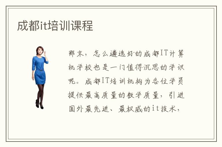 那末,怎么遴選好的成都IT計(jì)算機(jī)學(xué)校也是一門值得沉思的學(xué)識(shí)呢。成都IT培訓(xùn)機(jī)構(gòu)為各位學(xué)員提供最高質(zhì)量的教學(xué)質(zhì)量,引進(jìn)國(guó)外最先進(jìn)、最權(quán)威的it技術(shù),并不斷細(xì)化知識(shí)點(diǎn),一對(duì)一專業(yè)小班授課。如何選擇到最好的成都計(jì)算機(jī)培訓(xùn)計(jì)算機(jī)培訓(xùn)學(xué)校呢。成都IT培訓(xùn)學(xué)校的排名挨次是一個(gè)可以直不雅反映出各大成都IT培訓(xùn)學(xué)校,在專業(yè)講授品質(zhì)、專業(yè)培訓(xùn)課程以及專業(yè)培訓(xùn)結(jié)果等各個(gè)方面的的上風(fēng)與差勢(shì),是以成都IT培訓(xùn)學(xué)校的排名凡是會(huì)成為泛博想要學(xué)習(xí)計(jì)算機(jī)相干專業(yè)學(xué)生停止專業(yè)培訓(xùn)機(jī)構(gòu)選擇時(shí)的無(wú)力參考根據(jù)。成都IT技術(shù)人才培訓(xùn)好不好。成都IT培訓(xùn)學(xué)校在國(guó)內(nèi)的IT技術(shù)培訓(xùn)教育行業(yè)中是一個(gè)比較靠前的排名,具有的技術(shù)撐持比較高。若大家對(duì)某些課程感興趣,都可以報(bào)名參加,爭(zhēng)取在老師的指導(dǎo)下,獲得更理想的改進(jìn)。