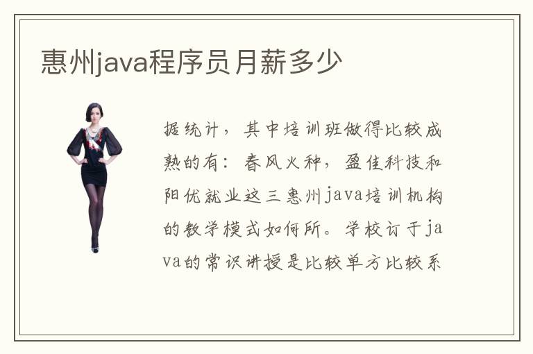 據(jù)統(tǒng)計(jì),其中培訓(xùn)班做得比較成熟的有:春風(fēng)火種,盈佳科技和陽(yáng)優(yōu)就業(yè)這三惠州java培訓(xùn)機(jī)構(gòu)的教學(xué)模式如何所。學(xué)校訂于java的常識(shí)講授是比較單方比較系統(tǒng)的,但是培訓(xùn)機(jī)構(gòu)為學(xué)生開設(shè)的課程是比較專業(yè)的,重視培育學(xué)生脫手才能,議決實(shí)現(xiàn)企業(yè)具體的設(shè)計(jì)項(xiàng)眼,取得豐碩貴重的java實(shí)踐經(jīng)歷。一般專業(yè)的java培訓(xùn)機(jī)構(gòu)會(huì)為學(xué)員開設(shè)四個(gè)月左右的課程,從基礎(chǔ)知識(shí)培訓(xùn)到實(shí)踐項(xiàng)目開發(fā),讓各位學(xué)員在四個(gè)月內(nèi)都能精通java。我想達(dá)內(nèi)作為眼前it行業(yè)的搶先教育品牌,一流的師資氣力,一流的講授品質(zhì),一流的學(xué)習(xí)裝備,努力于培育it行業(yè)的精英人材,包羅php以及java等等方面,達(dá)內(nèi)都是人人作為java培訓(xùn)機(jī)構(gòu)的首選。惠州Java培訓(xùn)班推出一系列熱門專業(yè),幫助學(xué)生自在選擇,尋覓到合適本身的學(xué)習(xí)使命。