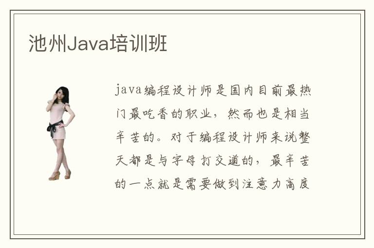 java編程設(shè)計(jì)師是國(guó)內(nèi)目前最熱門(mén)最吃香的職業(yè),然而也是相當(dāng)辛苦的。對(duì)于編程設(shè)計(jì)師來(lái)說(shuō)整天都是與字母打交道的,最辛苦的一點(diǎn)就是需要做到注意力高度集中,如果出現(xiàn)了一點(diǎn)錯(cuò)誤,在茫?!按a大軍”中尋找那一個(gè)小小的字母工程量實(shí)在是太大了。因此java編程設(shè)計(jì)師需要不斷提升自己的專(zhuān)業(yè)技能,選擇池州Java培訓(xùn)班進(jìn)行自我技術(shù)的提升就是一個(gè)不錯(cuò)的渠道。