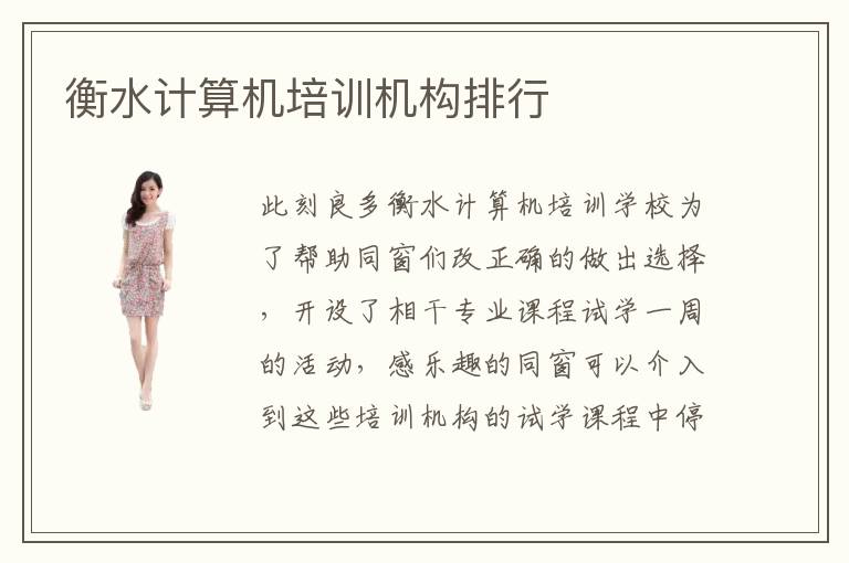 此刻良多衡水計算機培訓學校為了幫助同窗們改正確的做出選擇,開設了相干專業(yè)課程試學一周的活動,感樂趣的同窗可以介入到這些培訓機構的試學課程中停止親身休會。這樣的自己才是最優(yōu)秀的自己。很多人在選擇衡水計算機培訓學校的時候不知道該如何選擇,不知道選擇哪一所學校好。衡水計算機培訓中心的衡水計算機培訓機構實力怎么樣。衡水市位于我國的衡水省,具有良多國內(nèi)聞名的園林建筑,是一個汗青人文豐碩的都會。參考衡水計算機培訓排名,可以在大家選擇衡水地區(qū)的計算機培訓學校的時候提供一些有建設性的意見,衡水計算機培訓學??诒闆r是通過多方面的綜合情況來考察評定的。計算機的學習過程是漫長而又枯燥,很多學生因為沒有找到適合自己的學習方式而放棄it專業(yè)都學習。