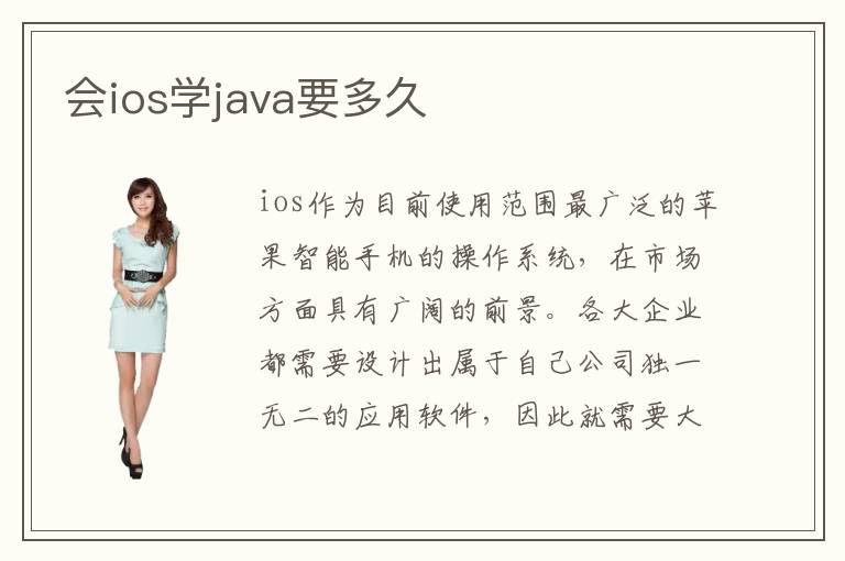ios作為目前使用范圍最廣泛的蘋果智能手機(jī)的操作系統(tǒng),在市場方面具有廣闊的前景。各大企業(yè)都需要設(shè)計出屬于自己公司獨一無二的應(yīng)用軟件,因此就需要大批量的具有相關(guān)設(shè)計經(jīng)驗并且專業(yè)性強(qiáng)的ios系統(tǒng)軟件開發(fā)設(shè)計工程師。而java作為系統(tǒng)軟件編程最常用的語言,學(xué)會了java對于ios軟件的開發(fā)設(shè)計也有或多或少的幫主,那么會ios學(xué)java要多久呢?