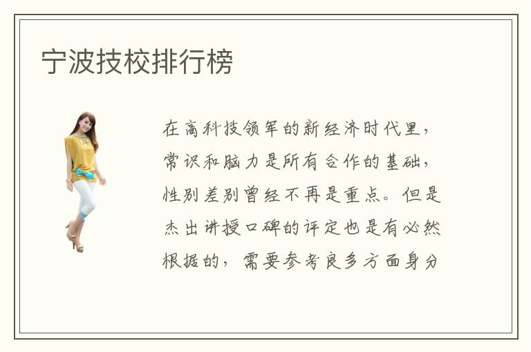 在高科技領(lǐng)軍的新經(jīng)濟時代里,常識和腦力是所有合作的基礎(chǔ),性別差別曾經(jīng)不再是重點。但是杰出講授口碑的評定也是有必然根據(jù)的,需要參考良多方面身分。如何挑選優(yōu)質(zhì)的寧波技術(shù)培訓機構(gòu)這是一個值得深思熟慮的話題。自己學起來會非常的慢,不如找到專業(yè)的學校和專業(yè)的老師,進行學習的話,會非??煲恍?。寧波技校值得考慮嗎,大多數(shù)學校的專業(yè)水平都比較高,不過也不排除有些專業(yè)可能并不值得信任,所以具體還是要看自身的優(yōu)勢。而且有些學校是針對于企業(yè)設(shè)置課程直接和企業(yè)接軌,這樣的話就可以更加能夠滿足學習的所需。家長要是覺得這些學校不是特別好,其實還可以在矮子里面拔將軍,也就是說找到一個值得大家信賴,而且也有更高效果的學校類型,盡量不要選擇小學校。