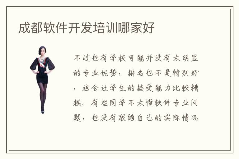 不過也有學(xué)??赡懿]有太明顯的專業(yè)優(yōu)勢(shì),排名也不是特別好,這會(huì)讓學(xué)生的接受能力比較糟糕。有些同學(xué)不太懂軟件專業(yè)問題,也沒有跟隨自己的實(shí)際情況,學(xué)習(xí)前沿知識(shí),競(jìng)爭(zhēng)相當(dāng)激烈,成績(jī)也會(huì)很不好。成都軟件開發(fā)培訓(xùn)機(jī)構(gòu)近些年來也開始逐步呈現(xiàn)在人人視線中,那末事實(shí)哪所成都軟件開發(fā)培訓(xùn)機(jī)構(gòu)比較可靠呢。另外也要重點(diǎn)了解軟件開發(fā)培訓(xùn)實(shí)踐課程,雖然說理論的課程學(xué)習(xí)比較快,但是學(xué)生也要多多關(guān)注實(shí)踐的課程內(nèi)容,因?yàn)檐浖_發(fā)的課程除了有大量的理論學(xué)習(xí)之后,還要有更多應(yīng)用在科技的場(chǎng)景當(dāng)中,才能發(fā)揮出知識(shí)的價(jià)值,而不是只有理論和紙上談兵的學(xué)習(xí)。軟件專業(yè)怎么樣,首先該專業(yè)的發(fā)展前景非常好,有大量的發(fā)展空間。軟件工程師培訓(xùn)好不好,培訓(xùn)機(jī)構(gòu)的教學(xué)成果比較優(yōu)越,但作為學(xué)生,應(yīng)該有獨(dú)立思考,不要只依賴于學(xué)校。