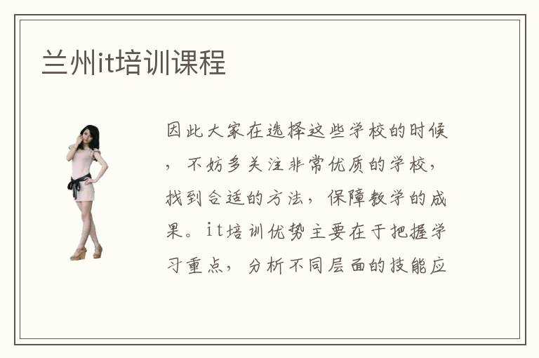 因此大家在選擇這些學校的時候,不妨多關注非常優(yōu)質(zhì)的學校,找到合適的方法,保障教學的成果。it培訓優(yōu)勢主要在于把握學習重點,分析不同層面的技能應用,幫助技術人員實現(xiàn)學習的目標。電腦專員找工作難不難,電腦技術專員找工作很簡單,首先因為行業(yè)的需求量大,再加上企業(yè)也愿意高薪聘請許多優(yōu)質(zhì)的技術員工,所以大家要抓住機會,努力成為專業(yè)技術人才。這里推薦給大家北大青鳥專業(yè)計算機培訓學校的蘭州校區(qū),北大青鳥致力于為國內(nèi)的it行業(yè)輸送高端優(yōu)質(zhì)的it技術人員,打造一個很多優(yōu)秀的計算機工程師畢業(yè)的舞臺。it培訓公司的成果如何,對于一般的學生來說,都沒有清晰的學習思路,往往很難體現(xiàn)出學習成果,但是培訓機構會制定課程,分享大量的學習經(jīng)驗,減輕學習的負擔。