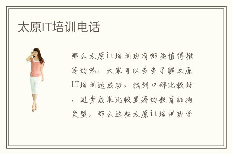 那么太原it培訓(xùn)班有哪些值得推薦的呢。大家可以多多了解太原IT培訓(xùn)速成班,找到口碑比較好、進(jìn)步成果比較顯著的教育機(jī)構(gòu)類型。那么這些太原it培訓(xùn)班學(xué)費(fèi)多少呢。it基礎(chǔ)教程特別多,比如計(jì)算機(jī)軟件知識(shí),計(jì)算機(jī)儲(chǔ)存結(jié)構(gòu),計(jì)算機(jī)硬件,計(jì)算機(jī)網(wǎng)絡(luò)等等。當(dāng)然有部分機(jī)構(gòu)也可為學(xué)員帶來非常全面的專業(yè)指導(dǎo),如果學(xué)生想要得到全面的提升機(jī)會(huì),那么可以考慮太原IT培訓(xùn)品牌有哪些,掌握清楚IT培訓(xùn)品牌口碑,選擇口碑優(yōu)質(zhì)、專業(yè)水平高、品牌效應(yīng)更加明顯的機(jī)構(gòu)。隨著電子時(shí)代的來臨,越來越多的人都在學(xué)習(xí)電腦技術(shù),學(xué)習(xí)電腦技術(shù),可以提升自己,讓自己變得優(yōu)秀起來。計(jì)算機(jī)專業(yè)領(lǐng)域確實(shí)有非常多的要求,很多同學(xué)剛開始起步,還不知道怎么學(xué)習(xí),進(jìn)度非常慢,成績(jī)也不理想,有時(shí)候還會(huì)拖后腿,影響個(gè)人的職業(yè)發(fā)展。