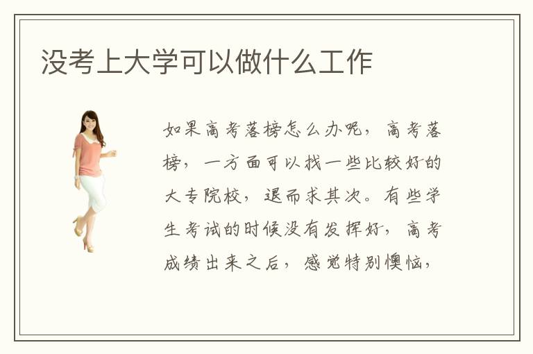 如果高考落榜怎么辦呢,高考落榜,一方面可以找一些比較好的大專院校,退而求其次。有些學(xué)生考試的時(shí)候沒(méi)有發(fā)揮好,高考成績(jī)出來(lái)之后,感覺(jué)特別懊惱,300分的成績(jī)確實(shí)是不太理想。跟著國(guó)度關(guān)于各行各業(yè)專業(yè)技術(shù)型人材的需求量逐步加強(qiáng),也就不竭挑高了高考的難度,是以愈來(lái)愈多的同窗會(huì)在高考進(jìn)程中落榜。女生們比較有鎖的還是他們的審美,此刻有良多比較存在成長(zhǎng)前景的美術(shù)設(shè)計(jì)專業(yè),高考落榜的女生可以選擇這些專業(yè)停止學(xué)習(xí)。許多高中畢業(yè)生在高考時(shí)只有200分到400分,確實(shí)很難找到滿意的本科院校,可以看看分?jǐn)?shù)線比較低的專職院校,從而進(jìn)行有效的篩選,珍惜自己考試的分?jǐn)?shù),以免遭到劣質(zhì)的學(xué)校。高考是獨(dú)木橋,只有少部分學(xué)生的勝利,因此大多數(shù)考生可能要面臨著落榜的窘境,有一些學(xué)生可能長(zhǎng)時(shí)間都沒(méi)辦法排除這些壓力,甚至認(rèn)為自己的人生就是特別失敗。