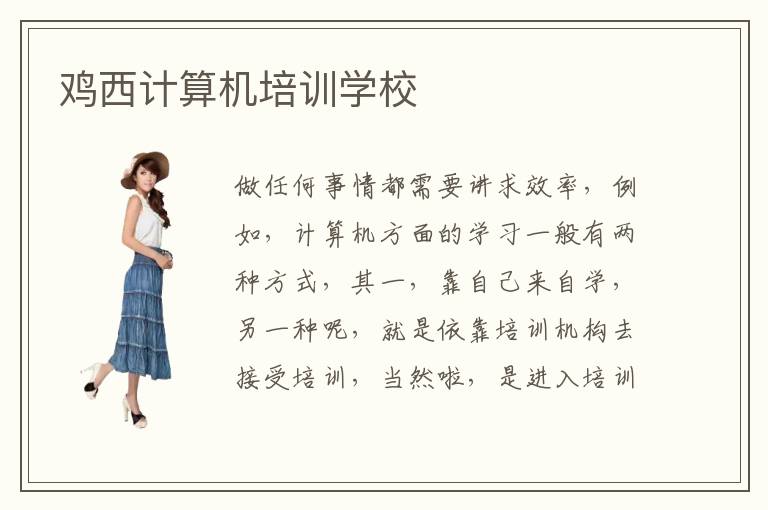 做任何事情都需要講求效率,例如,計(jì)算機(jī)方面的學(xué)習(xí)一般有兩種方式,其一,靠自己來自學(xué),另一種呢,就是依靠培訓(xùn)機(jī)構(gòu)去接受培訓(xùn),當(dāng)然啦,是進(jìn)入培訓(xùn)機(jī)構(gòu)學(xué)習(xí)能有更高的效率,因此,大多數(shù)人就會(huì)去選擇去雞西計(jì)算機(jī)培訓(xùn)學(xué)校接受培訓(xùn)。雞西電腦培訓(xùn)機(jī)構(gòu)培訓(xùn)內(nèi)容很全面也很豐富,雞西計(jì)算機(jī)培訓(xùn)中心學(xué)習(xí)環(huán)境適合大家學(xué)習(xí),雞西電腦培訓(xùn)機(jī)構(gòu)有效率。