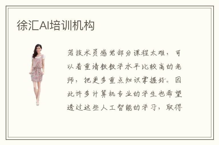 若技術(shù)員感覺部分課程太難,可以著重請教教學水平比較高的老師,把更多重點知識掌握好。因此許多計算機專業(yè)的學生也希望透過這些人工智能的學習,取得更多專業(yè)的優(yōu)勢,也能在公司發(fā)揮出自己的工作應用價值。作為一名該專業(yè)領(lǐng)域的學員,要想得到工作優(yōu)勢,就不能夠只關(guān)注淺層知識,還是要對自己有更嚴格的標準,努力學習更專業(yè)的技術(shù)。在學習人工智能專業(yè)的時候,發(fā)現(xiàn)自己的能力不夠完善,又或者是缺乏某些維度的學習,導致學習的效率大大下降,對某些專業(yè)的應用,都沒有辦法保持強勁優(yōu)勢。徐匯人工智能培訓費用可能要看人工智能培訓成果以及人工智能培訓資源,如果配備的資源比較豐富,成果也相當豐碩,那么這些機構(gòu)應該更加容易符合學生的標準,那么學校的收費標準也許會更高一些。