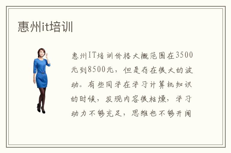 惠州IT培訓(xùn)價(jià)格大概范圍在3500元到8500元,但是存在很大的波動(dòng)。有些同學(xué)在學(xué)習(xí)計(jì)算機(jī)知識(shí)的時(shí)候,發(fā)現(xiàn)內(nèi)容很枯燥,學(xué)習(xí)動(dòng)力不夠充足,思維也不夠開闊,難免會(huì)有很多挑戰(zhàn)。所以很多人都選擇到惠州it培訓(xùn)班學(xué)習(xí)電腦技術(shù)。游戲技術(shù)員的薪水一般可以達(dá)到5000到21000元的水平,其實(shí)剛剛起步的技術(shù)員,還是盡量不要關(guān)注短暫的薪資,應(yīng)該要關(guān)注個(gè)人能力的提升,找到發(fā)展機(jī)會(huì)更多的公司,強(qiáng)化應(yīng)用的實(shí)力。,IT培訓(xùn)有哪些優(yōu)勢,主要是更加關(guān)注應(yīng)用,相對(duì)于傳統(tǒng)的計(jì)算機(jī)學(xué)校,IT培訓(xùn)班會(huì)更加側(cè)重于學(xué)生的應(yīng)用培訓(xùn),讓學(xué)生可以懂得各項(xiàng)應(yīng)用知識(shí)。不止改變了人們的生活方式,還帶動(dòng)了許多傳統(tǒng)企業(yè)的改革。在培訓(xùn)的時(shí)候,會(huì)充分利用IT培訓(xùn)技術(shù)含量,讓學(xué)生的技術(shù)變得更強(qiáng)。