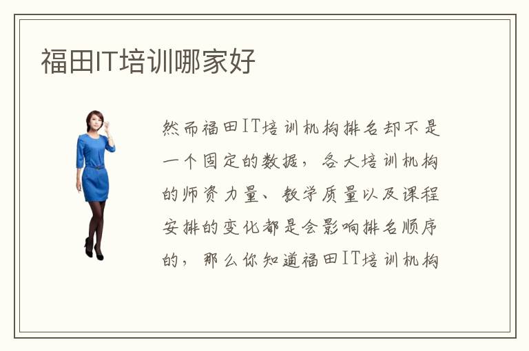 然而福田IT培訓機構排名卻不是一個固定的數(shù)據(jù),各大培訓機構的師資力量、教學質量以及課程安排的變化都是會影響排名順序的,那么你知道福田IT培訓機構最新排名是什么嗎。福田是國內(nèi)經(jīng)濟發(fā)達的中心城市,是我國的經(jīng)濟開發(fā)特別行政區(qū)。福田IT培訓學校能夠幫助學生掌握熟悉計算機知識,在學習的道路上可以少走一些彎路,更快更高效地達到預期的學習狀態(tài)。哪家更存在專業(yè)性呢。福田IT培訓機構在IT技術研究方面有比較重要的特色,把握學生學習機會,為其構造美好明天。這個問題的答案并不會是唯一的,每個人都有自己的評定標準。福田IT培訓班以小班教學為主,通過把一部分基礎相近、興趣相同、目標一致的學生們集中起來的授課形式,提高了福田IT培訓機構的教學效率。