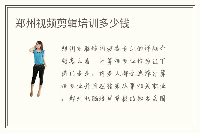 鄭州視頻剪輯培訓(xùn)多少錢