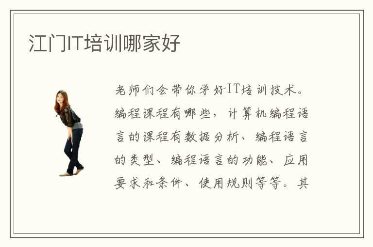 老師們會(huì)帶你學(xué)好IT培訓(xùn)技術(shù)。編程課程有哪些,計(jì)算機(jī)編程語(yǔ)言的課程有數(shù)據(jù)分析、編程語(yǔ)言的類型、編程語(yǔ)言的功能、應(yīng)用要求和條件、使用規(guī)則等等。其實(shí)計(jì)算機(jī)行業(yè)發(fā)展很快,要求逐漸提高,對(duì)技術(shù)人員的壓力也會(huì)逐漸升高。一部分學(xué)生感覺(jué)軟件開發(fā)的技術(shù)越來(lái)越多,難度越高,往往會(huì)面臨很多困惑,不得不選擇專業(yè)培訓(xùn)班的幫助。江門電競(jìng)培訓(xùn)學(xué)校會(huì)營(yíng)造很好的氛圍,幫助同學(xué)挖掘不足之處,讓同學(xué)可以享受電競(jìng)專業(yè)的學(xué)習(xí)樂(lè)趣。江門it培訓(xùn)學(xué)校里面的教師團(tuán)隊(duì)都是專業(yè)的。IT培訓(xùn)機(jī)構(gòu)優(yōu)點(diǎn)主要是可以挖掘出學(xué)生的潛力和特色,如果學(xué)生在某些專業(yè)方面比較感興趣,老師也可以及時(shí)發(fā)現(xiàn),然后進(jìn)行有方向性的培養(yǎng)。而且從事這一些工作崗位的人才越來(lái)越多,未來(lái)的賽道也會(huì)越來(lái)越緊,大家要明確個(gè)人的發(fā)展方向,努力提升專業(yè)實(shí)力。