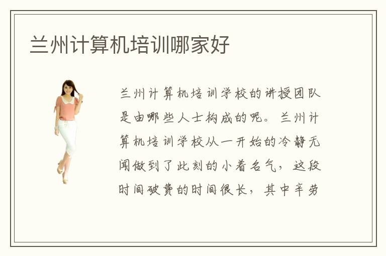蘭州計(jì)算機(jī)培訓(xùn)學(xué)校的講授團(tuán)隊(duì)是由哪些人士構(gòu)成的呢。蘭州計(jì)算機(jī)培訓(xùn)學(xué)校從一開(kāi)始的冷靜無(wú)聞做到了此刻的小著名氣,這段時(shí)間破費(fèi)的時(shí)間很長(zhǎng),其中辛勞卻鮮為人知并且不可思議,以是就更要顧惜蘭州計(jì)算機(jī)學(xué)校獲得的杰出成績(jī),乘勝追擊,做得更好??梢愿鶕?jù)每一位學(xué)員的時(shí)間安排和現(xiàn)實(shí)情況適當(dāng)調(diào)整。蘭州計(jì)算機(jī)培訓(xùn)學(xué)校自從學(xué)校開(kāi)初創(chuàng)辦以來(lái)培育的人材數(shù)目堪稱是不可勝數(shù),而蘭州地域也逐步將都會(huì)的成長(zhǎng)重心轉(zhuǎn)移到科技奇跡下去,蘭州計(jì)算機(jī)培訓(xùn)機(jī)構(gòu)以專業(yè)的培訓(xùn)水準(zhǔn)著名于國(guó)內(nèi)的計(jì)算機(jī)培訓(xùn)行業(yè),吸收了很多外來(lái)學(xué)子的插手學(xué)習(xí)。計(jì)算機(jī)的專業(yè)學(xué)習(xí)最需要學(xué)生具備的本質(zhì)便是對(duì)峙了,學(xué)會(huì)了碰到問(wèn)題不拋卻,便是成為一位優(yōu)異的計(jì)算機(jī)專業(yè)技術(shù)人材的第一步,固然也便是最主要的一步。