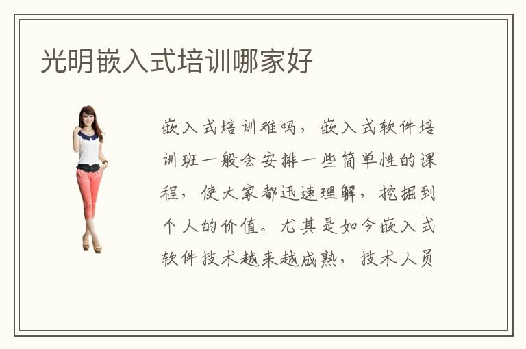 嵌入式培訓(xùn)難嗎,嵌入式軟件培訓(xùn)軟件培訓(xùn)班一般會安排一些簡單性的課程,使大家都迅速理解,挖掘到個人的價值。尤其是如今嵌入式軟件技術(shù)越來越成熟,技術(shù)人員的學(xué)習(xí)難度也不斷增大,因此要對個人有更高標準。許多軟件技術(shù)專員沒有系統(tǒng)學(xué)習(xí)過嵌入式軟件的知識,也不懂得如何應(yīng)用,甚至連基礎(chǔ)的嵌入式軟件結(jié)構(gòu)都不知道,很難完成各項軟件設(shè)計的任務(wù)。計算機專業(yè)學(xué)習(xí)的時候,很多學(xué)生都發(fā)現(xiàn)難度有點大,尤其是嵌入式軟件開發(fā)知識,如果沒有足夠的經(jīng)驗積累,也不了解整體的知識框架,進步的速度會有點慢,不過學(xué)生可以多關(guān)注一些合適的補習(xí)機構(gòu),選擇對應(yīng)性的復(fù)習(xí)課程,由老師來制定嵌入式開發(fā)培訓(xùn)培訓(xùn)目標以及計劃,學(xué)習(xí)效果和進展都會有很多改變的機會。嵌入式包括什么應(yīng)用,嵌入式軟件的應(yīng)用很廣,比如手機軟件APP以及各種移動程序。