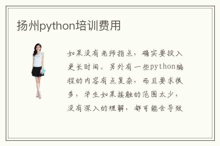 如果沒有老師指點,確實要投入更長時間。另外有一些python編程的內(nèi)容有點復(fù)雜,而且要求很多,學(xué)生如果接觸的范圍太少,沒有深入的理解,都可能會導(dǎo)致工作的優(yōu)勢不夠顯著,但是有python專業(yè)輔導(dǎo)班的幫助,情況就會好很多。這時可以選專業(yè)水平很高的輔導(dǎo)班,老師可營造濃郁的學(xué)習(xí)氣氛,調(diào)整學(xué)習(xí)規(guī)劃,解決實踐的難題。如果想獲得提高,得到更多這些機會,不妨多多關(guān)注揚州python培訓(xùn)班揚州python培訓(xùn)python培訓(xùn)多少錢,可能要4000~8000,但只是大概范圍,不是固定不變。很多學(xué)習(xí)比較慢的學(xué)生,在自學(xué)Python培訓(xùn)內(nèi)容的時候,會遇到很多問題,主要就是學(xué)習(xí)進度比較快,但是Python的專業(yè)知識一直都在更新,因此學(xué)生可能跟不上時代的發(fā)展和進步。