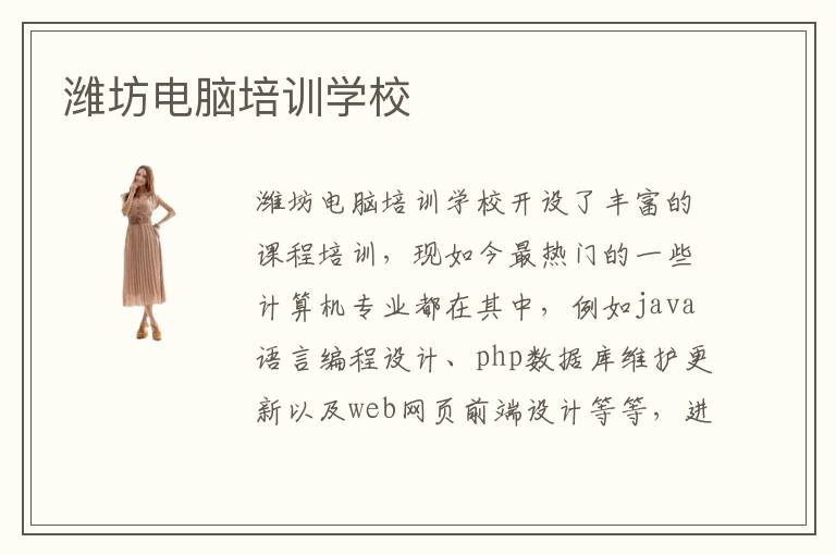 濰坊電腦培訓(xùn)學(xué)校開設(shè)了豐富的課程培訓(xùn),現(xiàn)如今最熱門的一些計算機專業(yè)都在其中,例如java語言編程設(shè)計、php數(shù)據(jù)庫維護更新以及web網(wǎng)頁前端設(shè)計等等,進入濰坊電腦培訓(xùn)學(xué)校學(xué)習(xí)專業(yè)的學(xué)生可以根據(jù)自己的興趣愛好選擇課程,這樣有興趣的學(xué)習(xí)這樣也會帶來學(xué)習(xí)的動力。濰坊電腦培訓(xùn)學(xué)校課程安排也比較人性化,會根據(jù)學(xué)員們的時間來安排課程,做到合理的規(guī)劃。