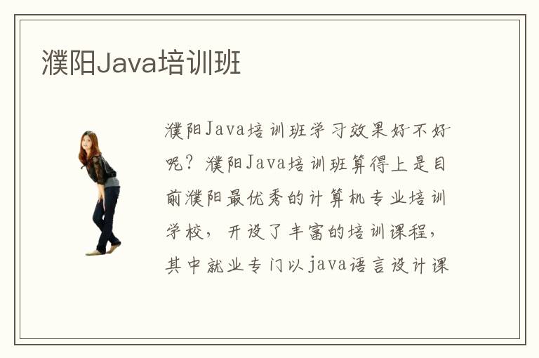 濮陽Java培訓班學習效果好不好呢?濮陽Java培訓班算得上是目前濮陽最優(yōu)秀的計算機專業(yè)培訓學校,開設了豐富的培訓課程,其中就業(yè)專門以java語言設計課程培訓為主的濮陽Java培訓班。學員們在濮陽Java培訓班學習相關專業(yè)技術(shù)以后,越來越多的學員能夠進入到國內(nèi)最優(yōu)秀的軟件開發(fā)設計公司,這與濮陽Java培訓班的高質(zhì)量的教學效果息息相關的,大家可以去濮陽Java培訓班體會一下。