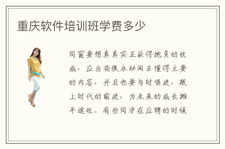 同窗要想真真實正獲得抱負(fù)的收成,應(yīng)當(dāng)花很永劫間去懂得主要的內(nèi)容,并且也要與時俱進(jìn),跟上時代的前進(jìn),為未來的成長攤平途徑。有些同學(xué)在應(yīng)聘的時候沒有任何優(yōu)勢,找不到滿意的工作,報名軟件應(yīng)用輔導(dǎo)課程后,有利于積累更多軟件應(yīng)用的常識,完成許多重要項目。重慶軟件開發(fā)培訓(xùn)講授難度大不大。因為有些軟件工作項目跟實際應(yīng)用聯(lián)系在一起,所以大家要重視,然后再多多總結(jié),多多練習(xí),而不要滿足于當(dāng)下的學(xué)習(xí)階段。軟件工程師指導(dǎo)有趣嗎,軟件工程師指導(dǎo)課程往往比較有趣,因為老師會將多年的經(jīng)驗呈現(xiàn)出來,讓大家能掌握許多前沿的科技,關(guān)注重要的解題思路和方向,價值往往是比較不錯的。重慶軟件培訓(xùn)中心哪家好。而且在復(fù)習(xí)階段還會進(jìn)行深入的總結(jié)和反復(fù)的訓(xùn)練,加深同學(xué)對知識的印象,也能提高熟練運(yùn)用的能力。