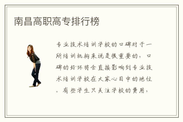 專業(yè)技術培訓學校的口碑對于一所培訓機構來說是很重要的,口碑的好壞將會直接影響到專業(yè)技術培訓學校在大家心目中的地位。有些學生只關注學校的費用,卻忽略了就業(yè)的形勢或者是教學質量很難保證教學成果。南昌高職院校成立多年通過自身的教學實力,充分證明了高職院校也是有靠譜的,也為南昌高職院校贏得了良好的口碑。南昌高職院校幫助處于瓶頸期的學生們找到自己的人生定位和發(fā)展道路。南昌高職院校其實是很多的,大多數(shù)人在選擇這些院校的時候會重點考慮到教育水平,專業(yè)優(yōu)勢,不同學校的老師情況等等,雖然有些學校的教育水平不是特別高,很容易被人輕視。高職院校就是我們所說的職校,它是中等專業(yè)學校的一部分。但還是有高等院校擁有自身的門檻,也在不斷的優(yōu)化教學環(huán)境和設備,讓學生擁有更多先進的知識水平,保障未來的發(fā)展成果。
