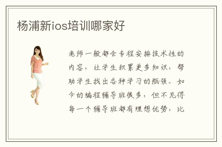 老師一般都會(huì)專程安排技術(shù)性的內(nèi)容,讓學(xué)生積累更多知識(shí),幫助學(xué)生找出各種學(xué)習(xí)的瓶頸。如今的編程輔導(dǎo)班很多,但不見得每一個(gè)輔導(dǎo)班都有理想優(yōu)勢(shì),比如學(xué)校的教育水平低,學(xué)習(xí)效果不夠顯著,同學(xué)的收獲也比較少。楊浦新編程培訓(xùn)機(jī)構(gòu)有哪些,只是要看不同學(xué)校的綜合能力,師資力量等等。學(xué)習(xí)編程語言要花很長(zhǎng)的時(shí)間,不少同學(xué)急于求成,不太懂如何學(xué)習(xí)檢驗(yàn)的知識(shí),不了解怎么樣才能夠達(dá)到比較高的標(biāo)準(zhǔn),長(zhǎng)期處于很迷茫的狀態(tài)。還有部分學(xué)生因?yàn)閷W(xué)習(xí)思路不夠明確,輔導(dǎo)老師會(huì)幫忙進(jìn)行整理,梳理知識(shí)的脈絡(luò),很快就能找到學(xué)習(xí)的方向。電腦學(xué)校效率高嗎,多數(shù)電腦培訓(xùn)學(xué)校的效率都很高,老師可以介紹很多重要的電腦技術(shù)的應(yīng)用項(xiàng)目,解決實(shí)踐的難題。計(jì)算機(jī)編程越來越受到大家的歡迎,就是因?yàn)檫@些課程有點(diǎn)復(fù)雜,而且版本越來越新,如果技術(shù)人員沒有認(rèn)真學(xué)習(xí),也沒有經(jīng)驗(yàn)和基礎(chǔ),學(xué)習(xí)成果和競(jìng)爭(zhēng)優(yōu)勢(shì)都很難體現(xiàn)。